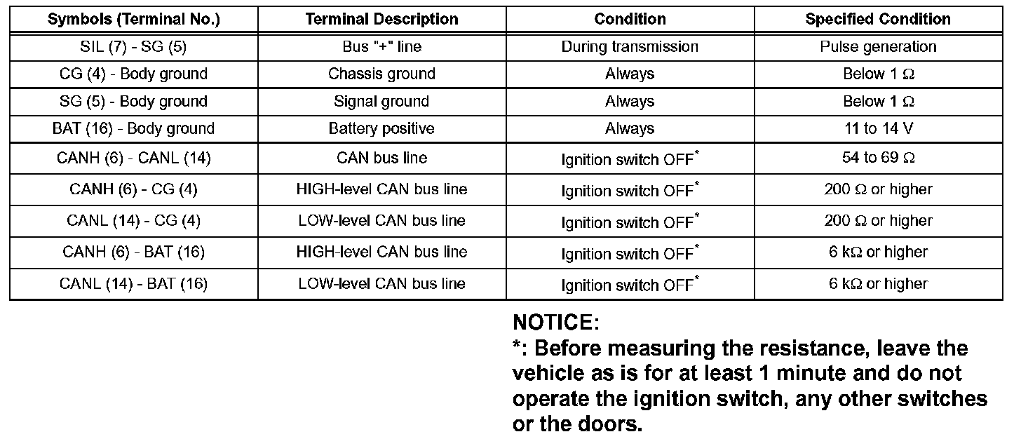 If the result is not as specified, the DLC3 may have a malfunction. Repair or replace the harness and connector.