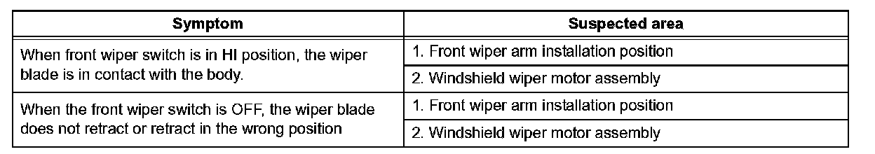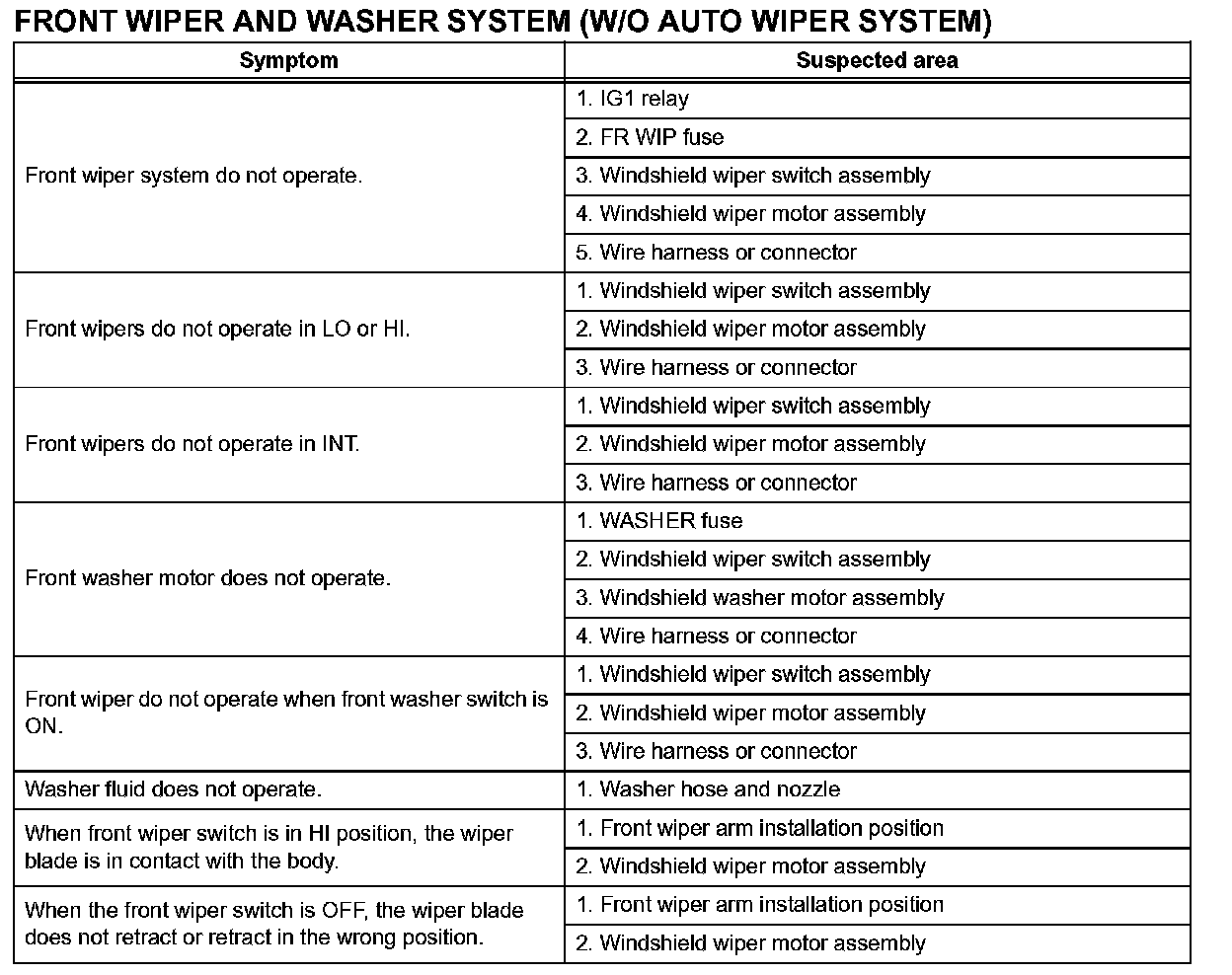 Problem Symptoms Table - Front Wiper And Washer System (W/O Auto Wiper System):