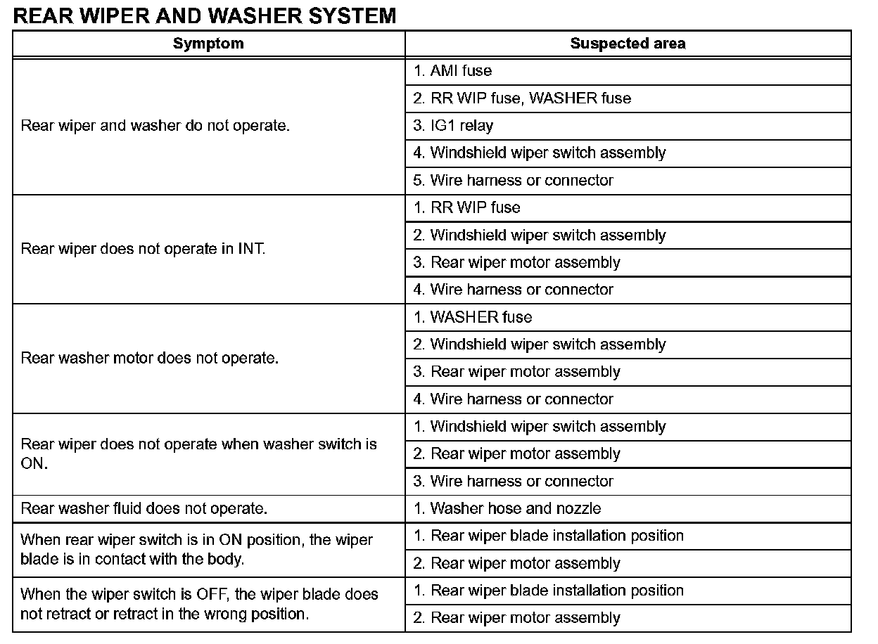 Problem Symptoms Table - Rear Wiper And Washer System: