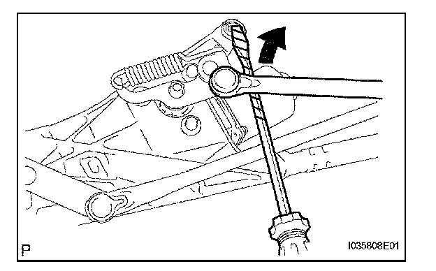 a. Using a screwdriver wrapped with protective tape, separate the rod of the wiper link assembly from the windshield wiper motor assembly as shown in the illustration.