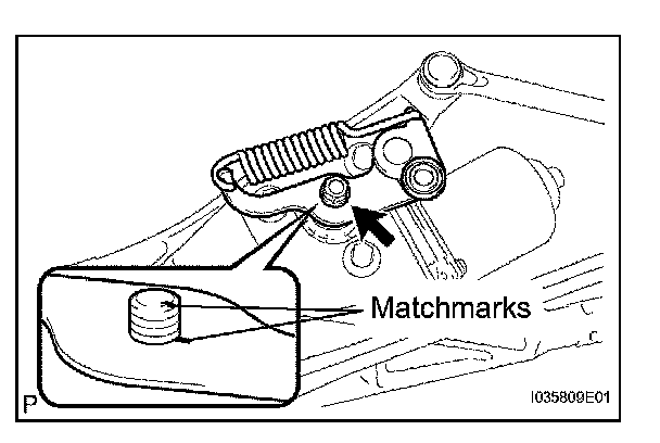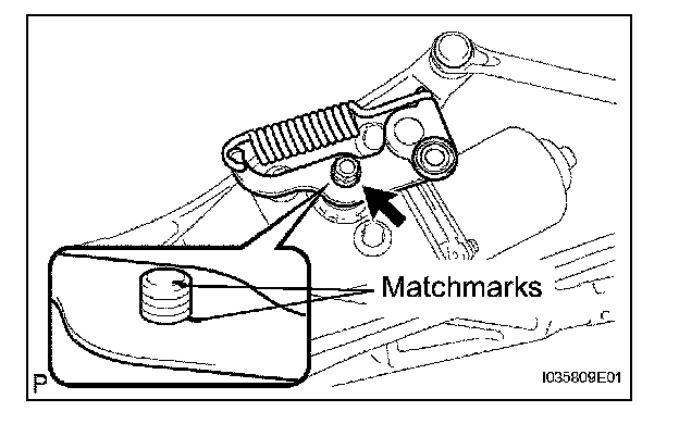 c. Put the matchmarks on the crank arm assembly and windshield wiper motor assembly.