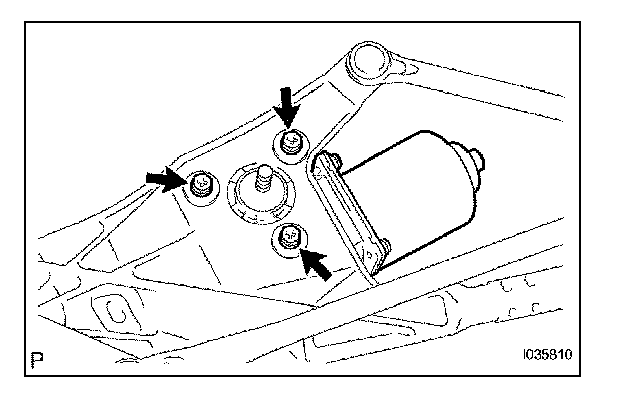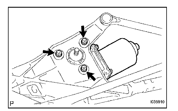d. Remove the 3 bolts and windshield wiper motor assembly from the windshield wiper link assembly.