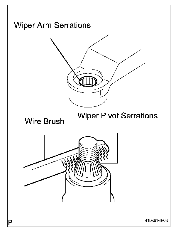 b. Clean the wiper pivot serrations with a wire brush (when reinstalling).