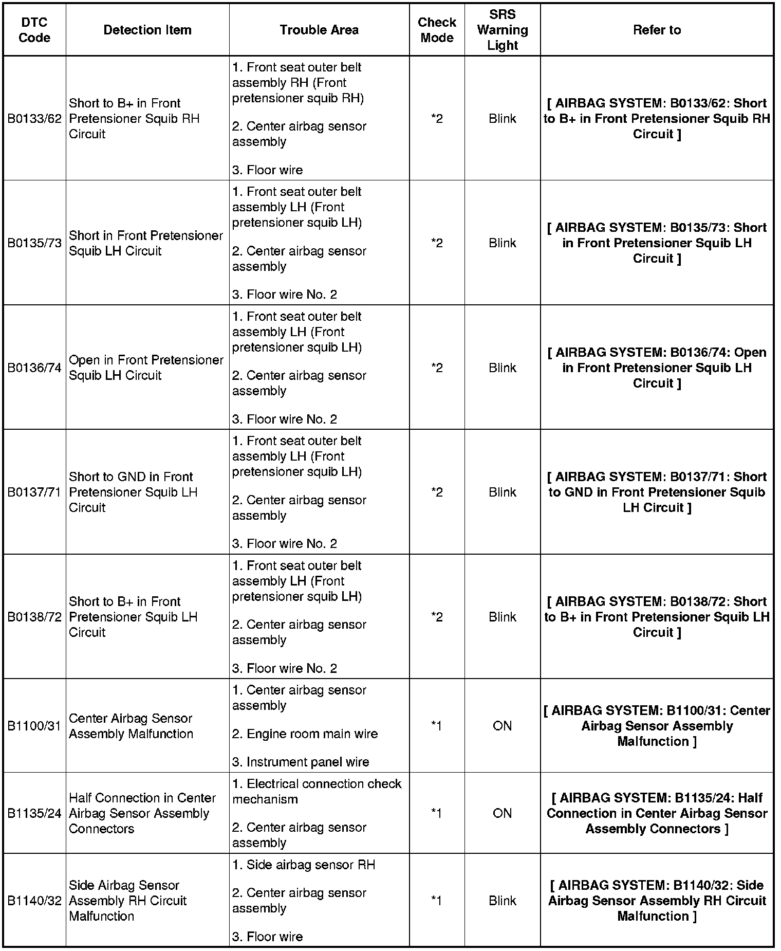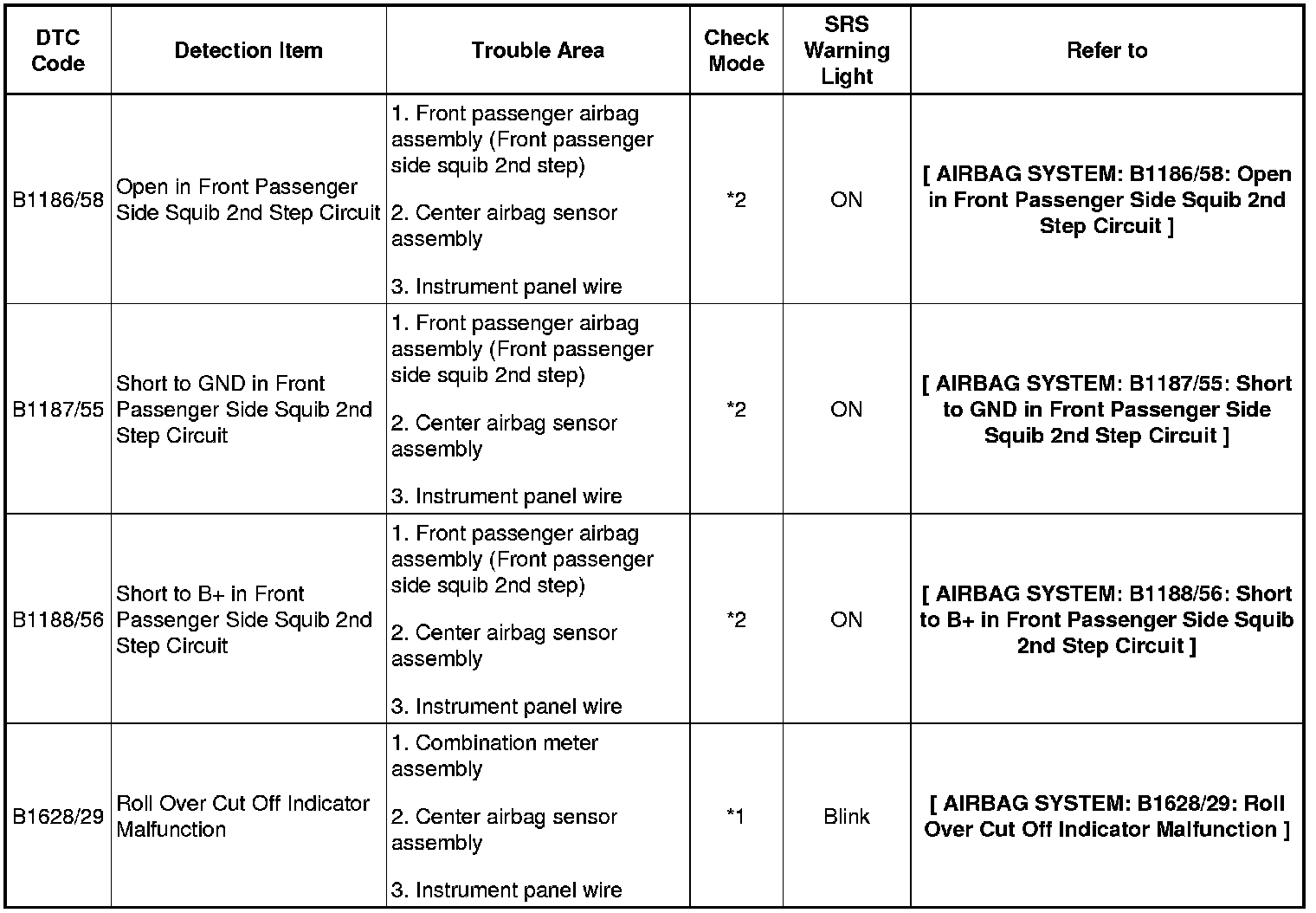 *2: DTC is corresponding to the check mode.