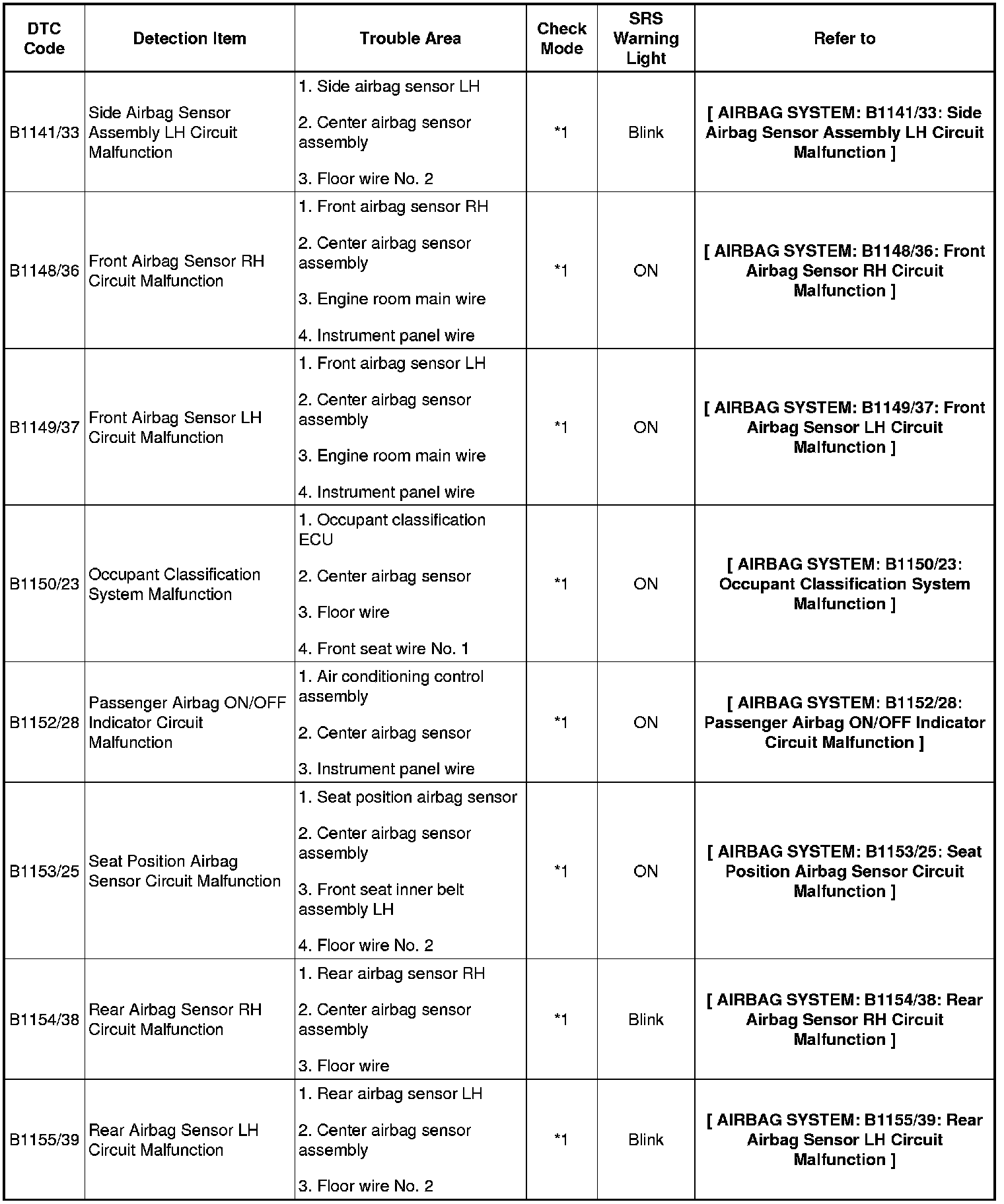 1. DTCS FOR SUPPLEMENTAL RESTRAINT SYSTEM