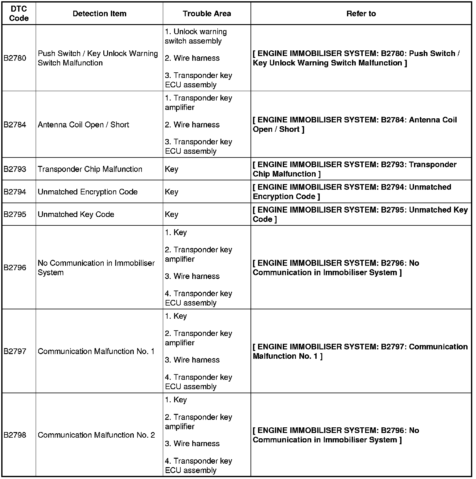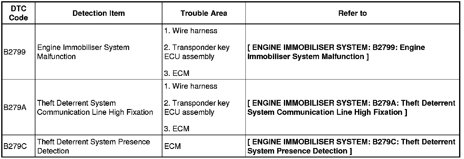 TRANSPONDER KEY ECU DIAGNOSTIC TROUBLE CODE CHART