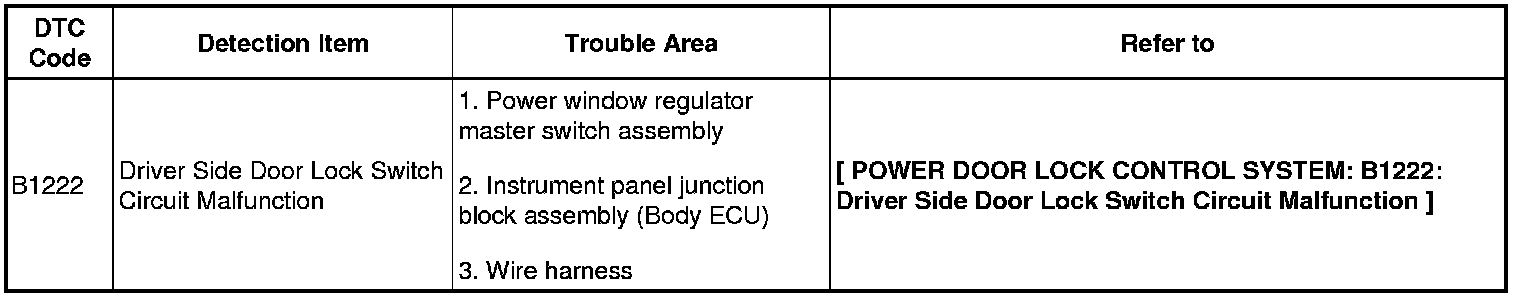 HINT: If a trouble code is indicated during the DTC check, check the circuit listed for that code in the table below. Then proceed to the appropriate procedure.