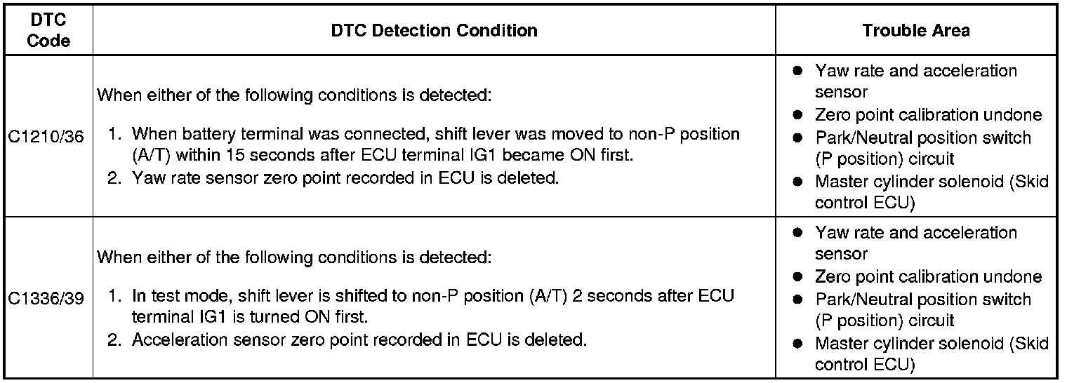 DTC C1210/36 - Zero Point Calibration of Yaw Rate Sensor Undone