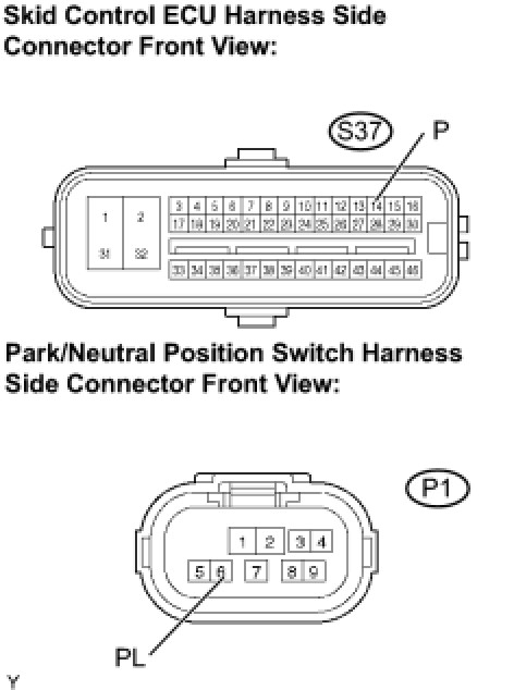 2. CHECK HARNESS AND CONNECTOR (SKID CONTROL ECU - PARK/NEUTRAL POSITION SWITCH)