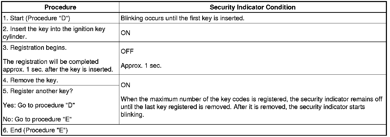 HINT: The key has 2 codes: The key code (immobilizer code) and the wireless code. Both of these codes need to be registered. Refer to the wireless code registration procedures.