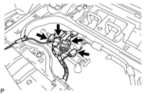 (a) Disengage the 4 claws of the wire harness clamp and disconnect the wire harness.