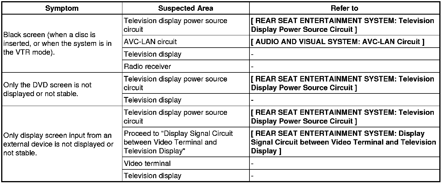 HINT: Use the table below to help determine the cause of the problem symptom. The potential causes of the symptoms are listed in order of probability in the "Suspected Area" column of the table. Check each symptom by checking the suspected areas in the order they are listed. Replace parts as necessary.