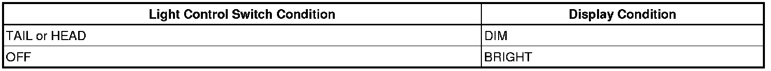 (d) Check that the display changes between DIM and BRIGHT according to the light control switch operation.