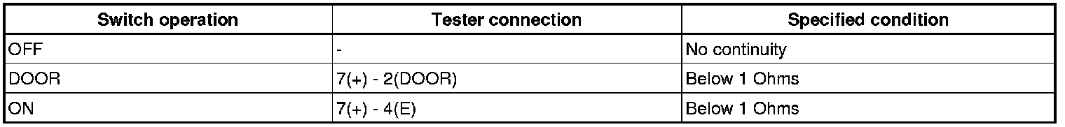 (1) Check continuity between terminals at each switch position as shown in the chart.