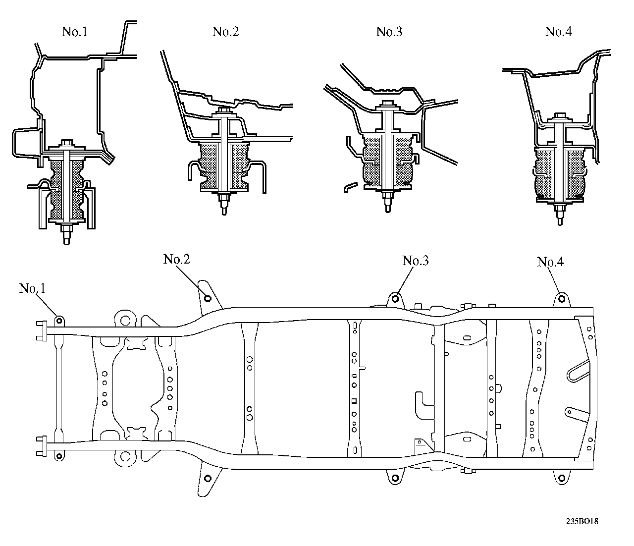 ^ The mounting construction of the No.1 cab uses a type that is surrounded by a panel. The No.2 to No.4 mountings are the collar construction type.