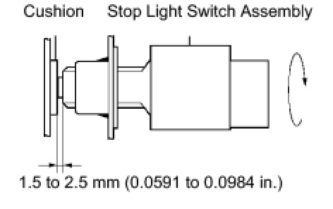 HINT: Due to the inverse screw structure, if the stop light switch assembly is turned clockwise, the stop light switch assembly moves in the direction to be pulled out.