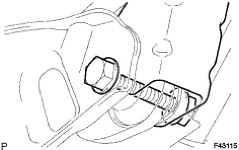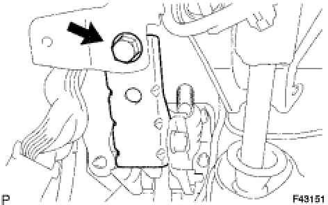 (d) Temporarily tighten the bolt and nut to the brake pedal support sub-assembly, brake pedal support reinforcement and brake pedal lever.