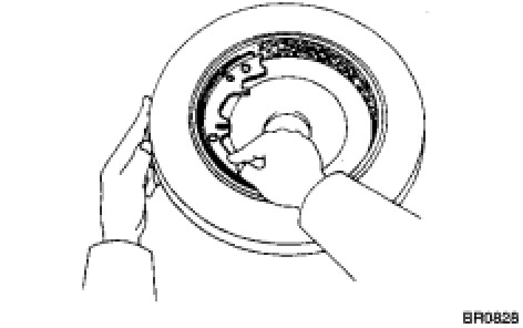 NOTE: There should be no oil or grease adhering to the friction surface of the shoe lining and disc.