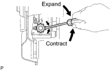 (b) Remove the hole plug, and turn the adjuster and expand the shoes until the disc locks.