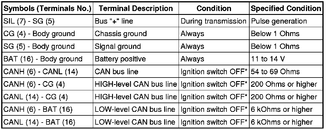 NOTE: *: Before measuring the resistance, leave the vehicle as is for at least 1 minute and do not operate the ignition switch, any other switches or the doors.