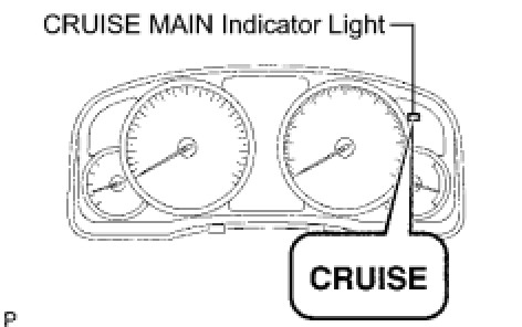 (b) Check that the CRUISE main indicator light illuminates when the cruise control main switch is turned on, and that the indicator light turns off when the main switch is turned off. If the results are not as specified, inspect the CRUISE main indicator light circuit Cruise Main Indicator Light Circuit.