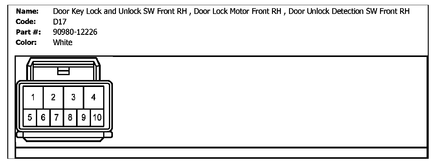 D17 (Door Key Lock And Unlock SW Front RH, Door Lock Motor Front RH, Door Unlock Detection SW Front RH):
