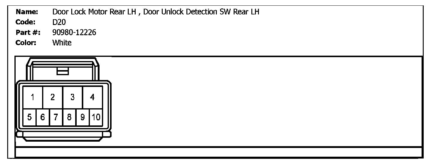 D20 (Door Lock Motor Rear LH, Door Unlock Detection SW Rear LH):