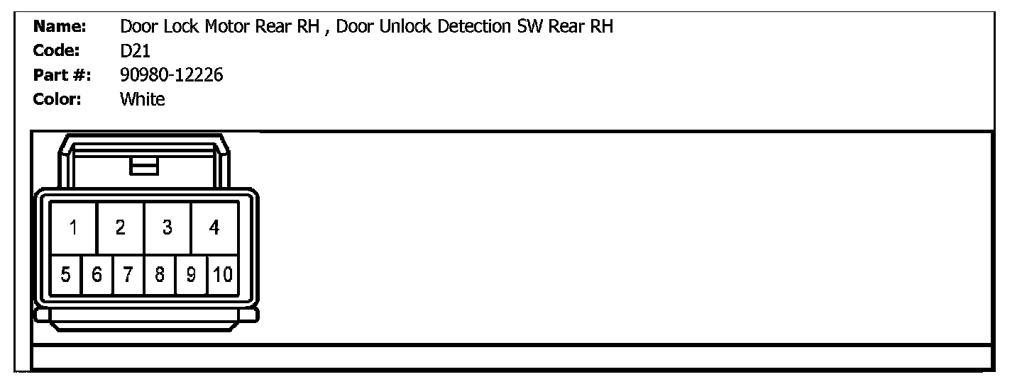 D21 (Door Lock Motor Rear RH, Door Unlock Detection SW Rear RH):