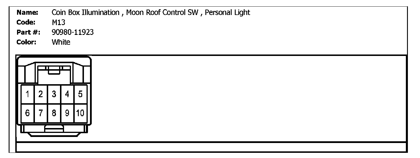 M13 (Coin Box Illumination, Moon Roof Control SW , Personal Light):