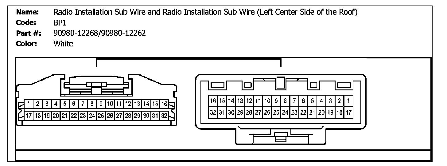 BP1 (Radio Installation Sub Wire And Radio Installation Sub Wire (Left Center Side Of The Roof)):