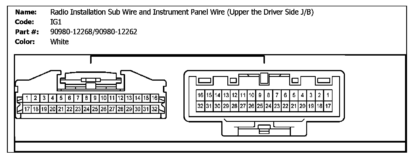 IG1 (Radio Installation Sub Wire And Instrument Panel Wire (Upper The Driver Side J/B)):