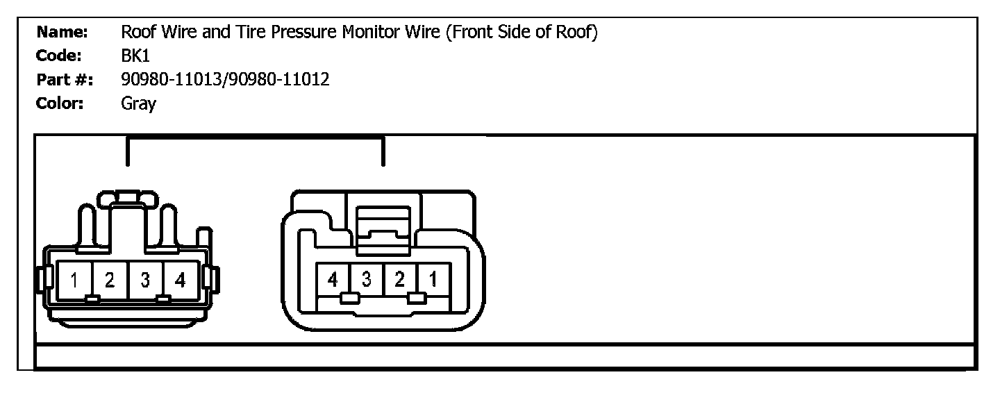 BK1 (Roof Wire And Tire Pressure Monitor Wire (Front Side Of Roof)):