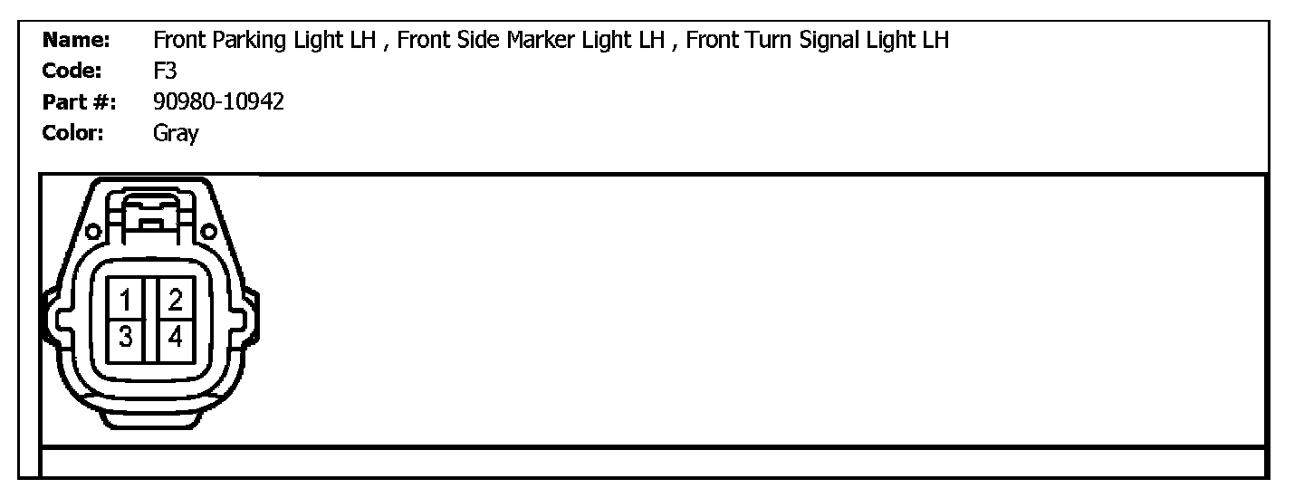F3 (Front Parking Light LH, Front Side Marker Light LH, Front Turn Signal Light LH):