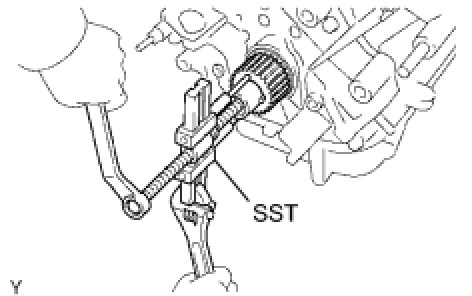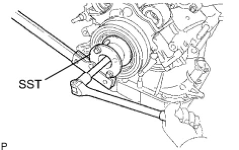 (b) Using SST, remove the crankshaft pulley.