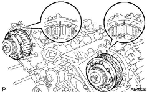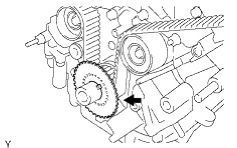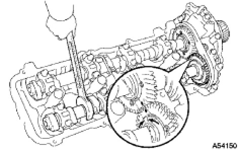 HINT: When removing the camshafts, make sure that the torsional spring force of the sub-gear has been eliminated by the above operation.