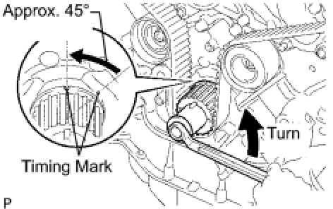 (1) Using the crankshaft damper bolt, turn the crankshaft counterclockwise by approx. 45°.