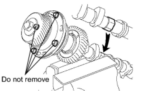 - Do not remove the 4 bolts shown in the illustration. If any of them are loosened or removed, the backlash of the gear in the timing tube will go out of adjustment. In this case, replace the timing tube assembly with a new one.
