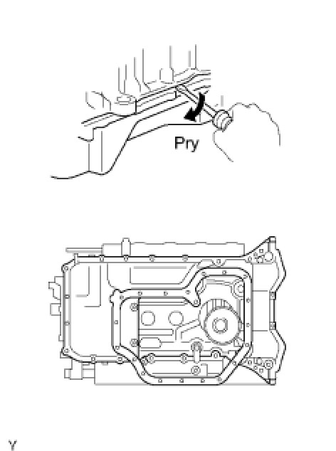 (b) Insert the blade of the oil pan seal cutter between the oil pan and No. 2 oil pan, and cut off applied sealer. Remove the No. 2 oil pan.