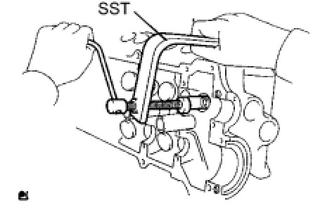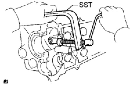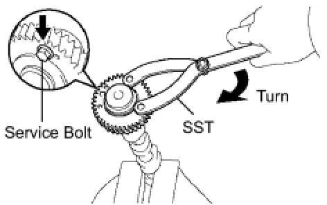 (b) Using SST, turn the sub gear clockwise, and remove the service bolt.