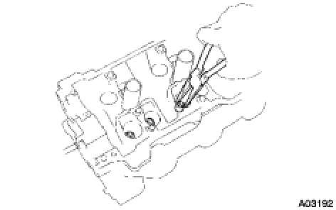 - Do not drop the plate washer for cylinder head bolt into portion A of the cylinder head. If dropped into portion A, the plate washer will pass through the cylinder head and cylinder block into the oil pan.