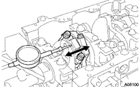 (a) Using a dial indicator, measure the thrust clearance while prying the crankshaft back and forth with a screwdriver.