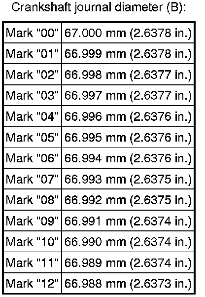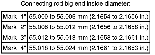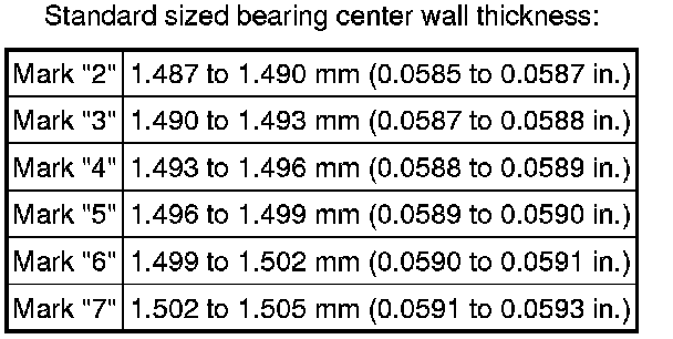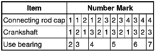 HINT: If using a standard bearing, replace it with one having the same number. If the number of the bearing cannot be determined, add together the numbers imprinted on the connecting rod cap and crankshaft, then select the bearing with the same number as the total. There are 6 sizes of standard bearings, marked "2", "3", "4", "5", "6" and "7".