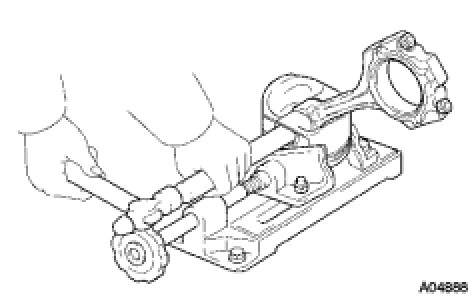 (f) Using a plastic hammer and brass bar, lightly tap out the piston pin and remove the connecting rod.