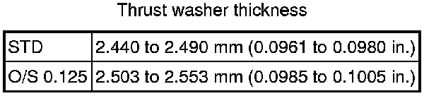 If the thrust clearance is greater than the maximum, replace the thrust washers as a set.
