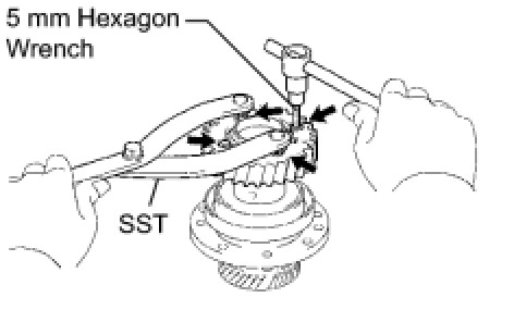(b) Using SST and a 5 mm hexagon wrench, uniformly tighten the 4 bolts in several steps.