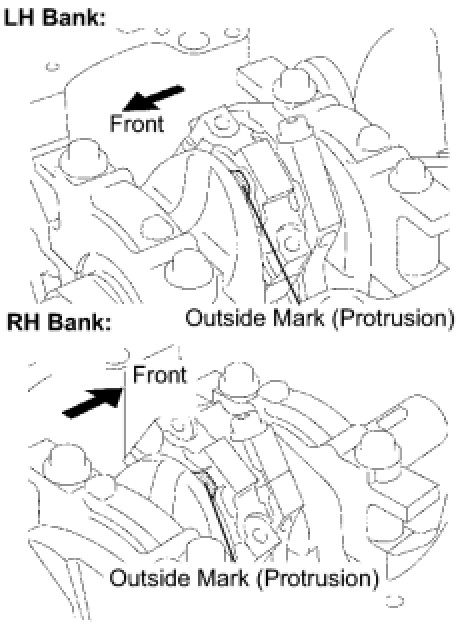 (3) Check that the outside mark of the connecting rod cap is facing in the correct direction.