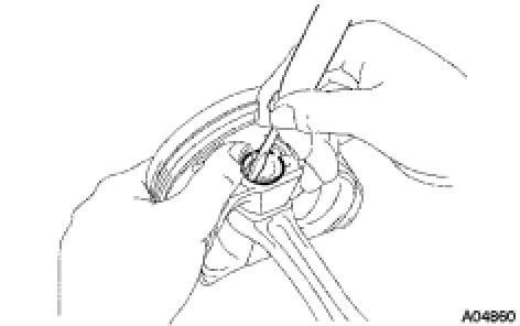 (f) Using a screwdriver, install a new snap ring on the other side of the piston pin hole.