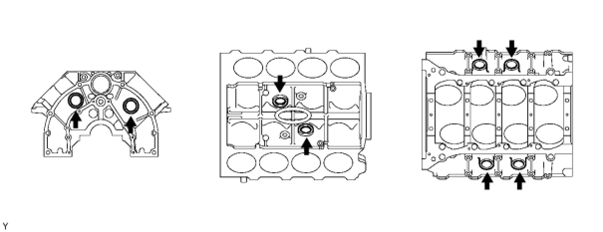 (a) Install the 2 thrust washers under the No. 3 journal position of the cylinder block with the oil grooves facing outward.