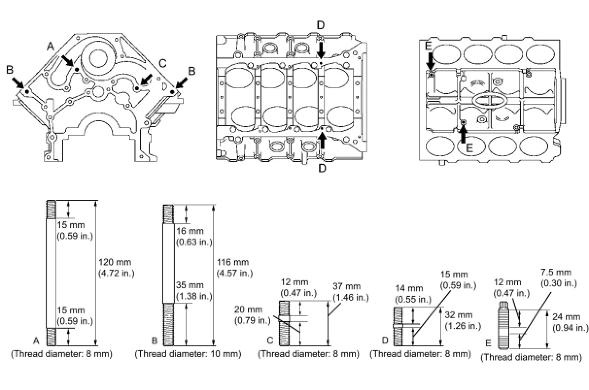 - If any one of the bearing cap bolts is broken or deformed, replace it.