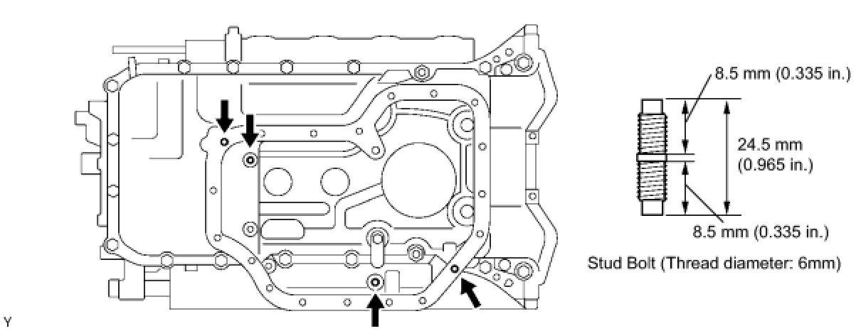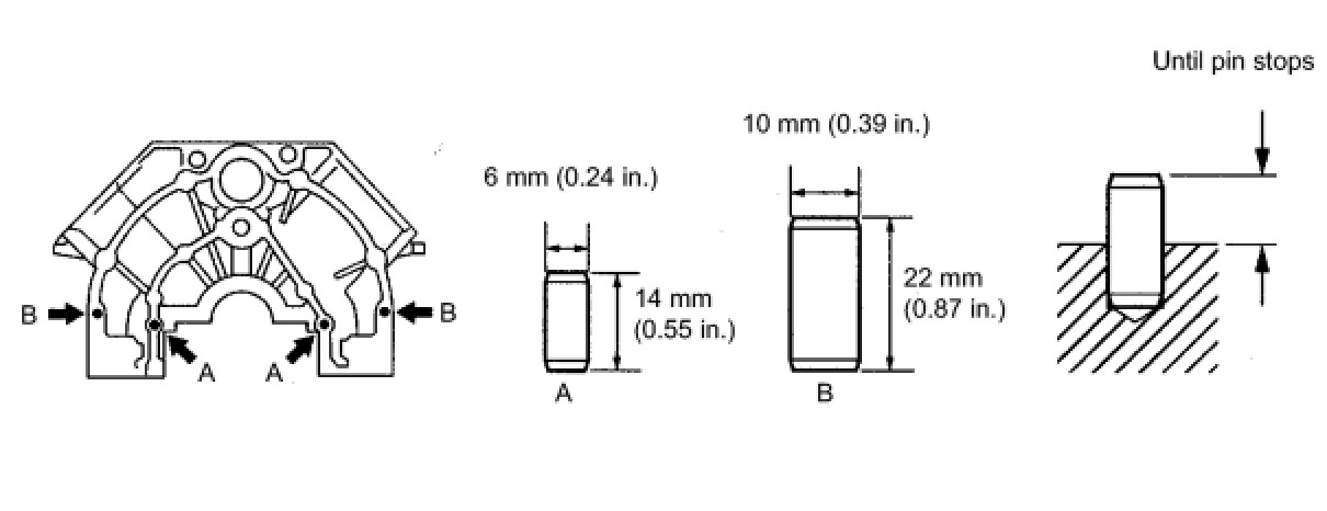 If the clearance is more than 0.2 mm (0.008 in.), the oil pan will be stretched.